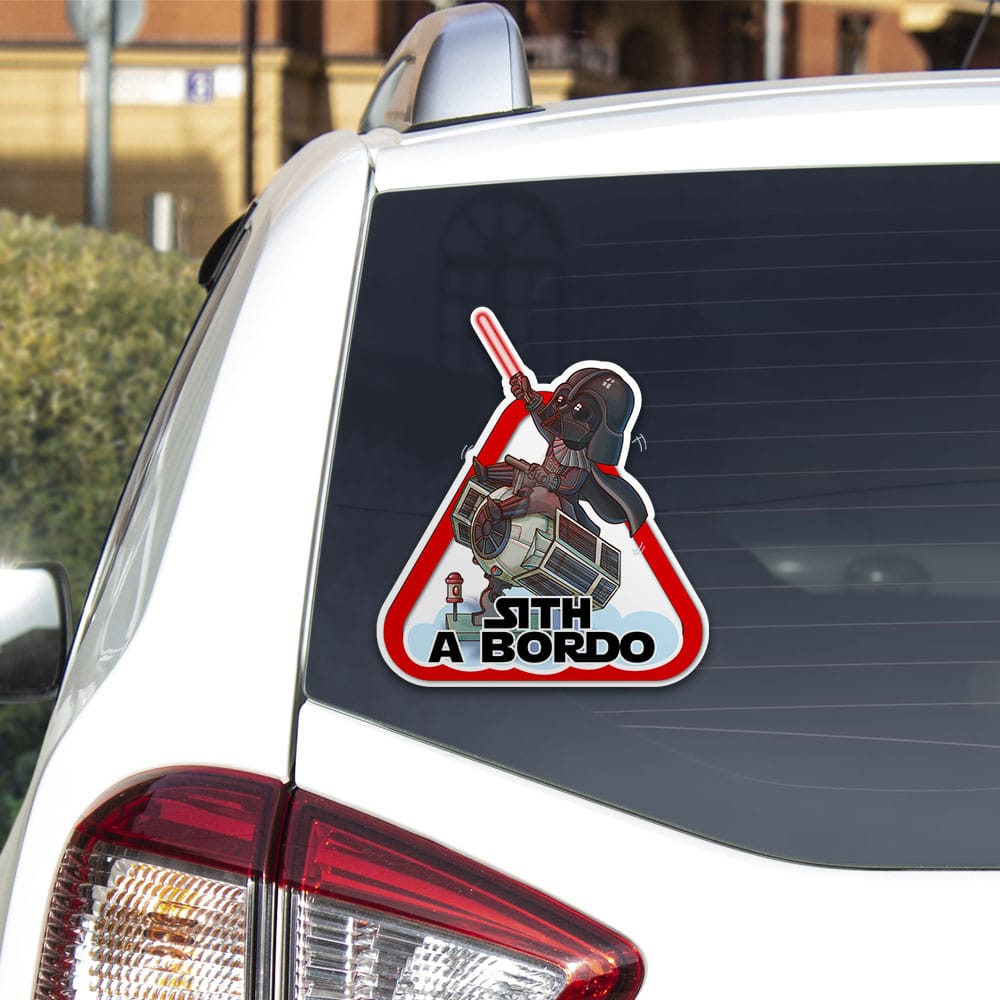La Pegatina Darth Vader a Bordo es porque sabemos que eres un padre friki de la famosa saga Star Wars y quieres que el coche de atrás lo sepa y además respete a tu hijo o hija respecto a la seguridad. ¡Para los aficionados a la saga de la Guerra de las Galaxias que acaban de ser padres o madres!
