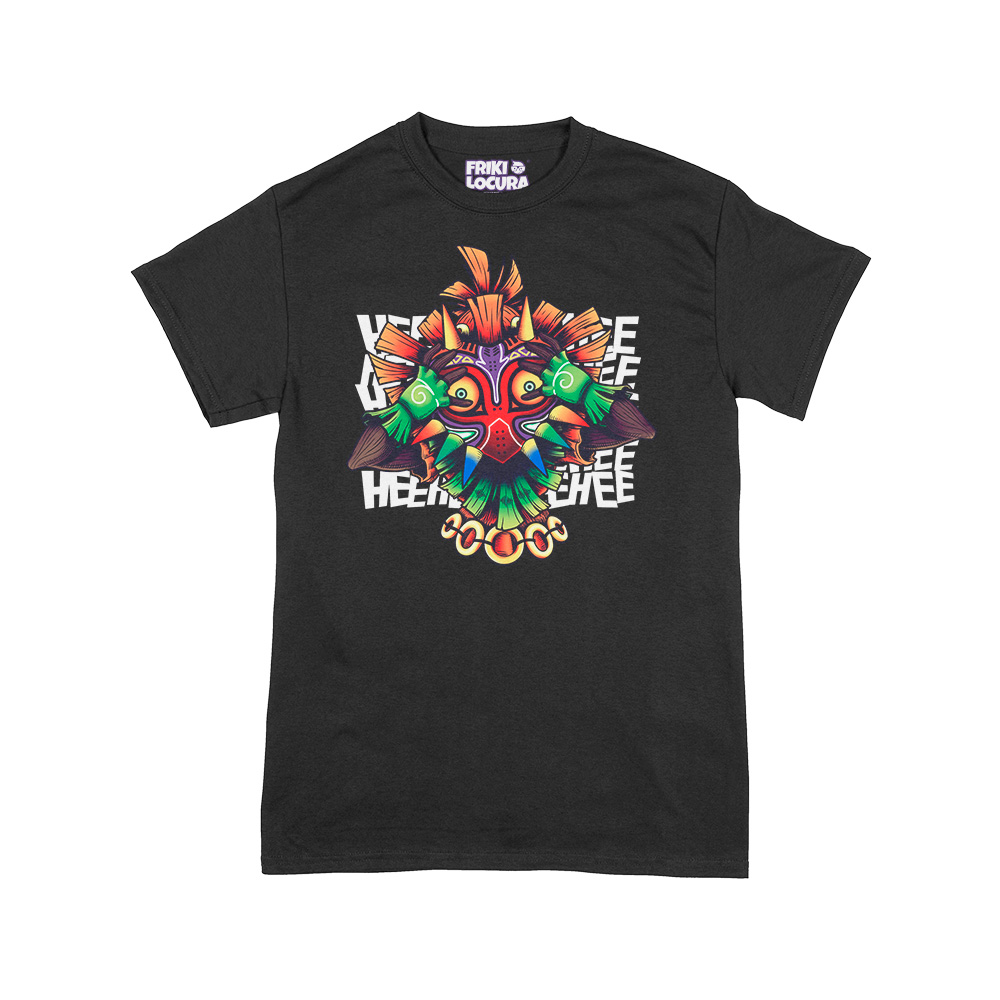 Si eres un auténtico fan de The Legend of Zelda, especialmente de Majora’s Mask, esta camiseta es para ti. Con un diseño impactante, muestra a Skull Kid sosteniendo la enigmática Máscara de Majora con ambas manos, mientras de fondo resuena su escalofriante risa con las letras «HEE HEE HEE» en blanco.